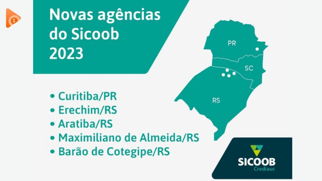 No planejamento de 2023, o Rio Grande do Sul vai ganhar mais quatro unidades da cooperativa de crédito — Erechim (2º ponto), Aratiba, Maximiliano de Almeida e Barão de Cotegipe, todas com prazos de inauguração já previamente definidos — março, agosto outubro e dezembro, respectivamente. A cobertura no estado vai aumentar de sete para 11 agências, o que irá consolidar ainda mais a marca Sicoob no território gaúcho.