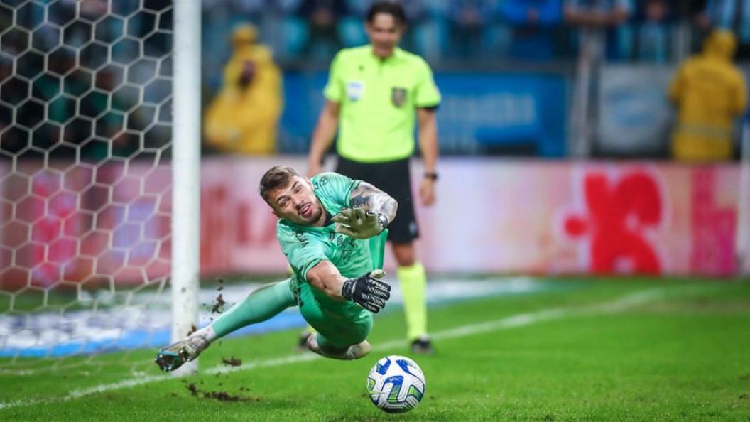 Aos 35 minutos, Bitello avançou e na risca da grande área, chutou – a bola bateu no braço de Acevedo e a penalidade foi marcada. Franco Cristaldo foi para a cobrança, chutando forte, a meia altura, no lado direito da meta. Marcos Felipe voou para fazer a defesa e impedir o gol gremista.