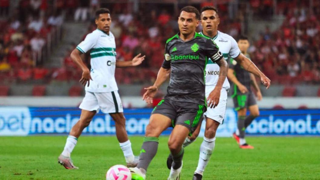Os primeiros movimentos anunciaram um jogo de ataque contra defesa, mas os planos do Inter se complicaram aos 8 minutos do primeiro tempo, quando Vitão recebeu cartão vermelho após falta em Garcez. Embalado pela superioridade numérica, o Coritiba criou três chances nos minutos seguintes – e até balançou as redes, mas o lance foi anulado por impedimento.