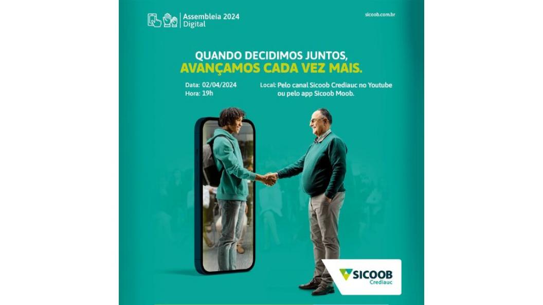 A direção do Sicoob Crediauc agendou para o mês de abril do corrente ano, dois encontros para tratar da prestação de contas do exercício 2023 e divulgar os resultados alcançados no período. No dia 2, as 19 horas, será realizada a Pré-assembleia Digital com viés informativo, abrangendo todo o quadro social da instituição que hoje supera os 68 mil cooperados.