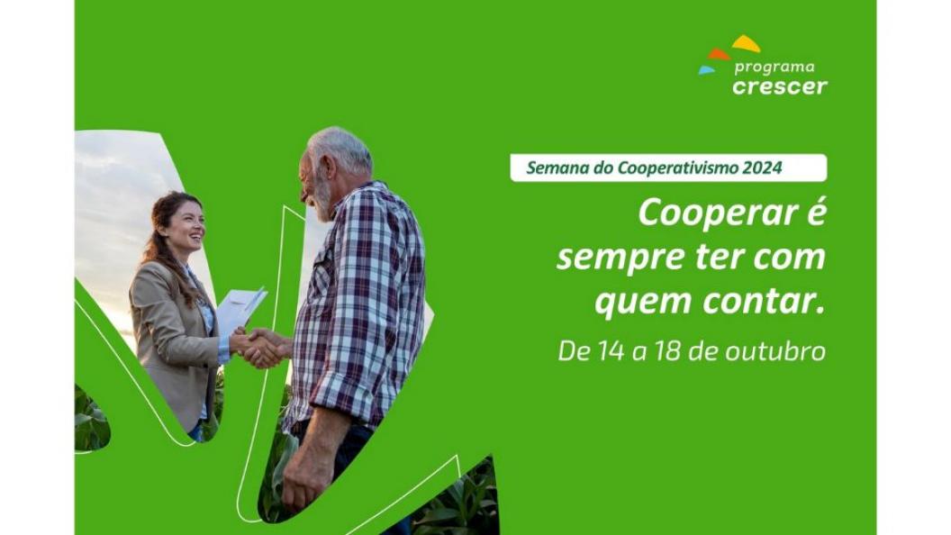 Para fortalecer a essência do movimento cooperativista e promover seus princípios, o Sicredi celebra de 14 a 18 de outubro a Semana do Cooperativismo. Uma iniciativa do Programa Crescer,  que neste ano tem como tema a frase “Cooperar é sempre ter com quem contar”, e busca destacar os diferenciais do movimento e seu impacto positivo nas comunidades e na vida das pessoas.