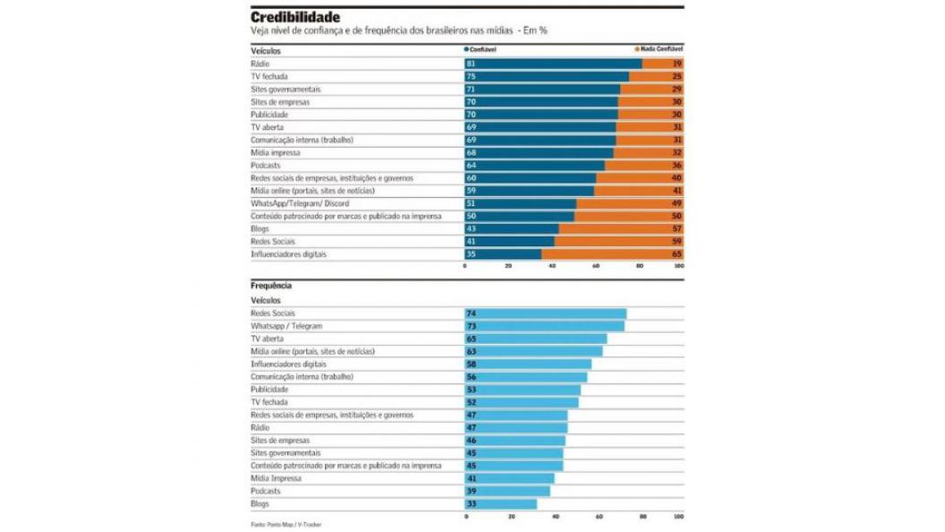 Gráfico que mostra os resultados da pesquisa sobre credibilidade e uso / Valor Econômico Clicando Aqui ou conferindo nas imagens!