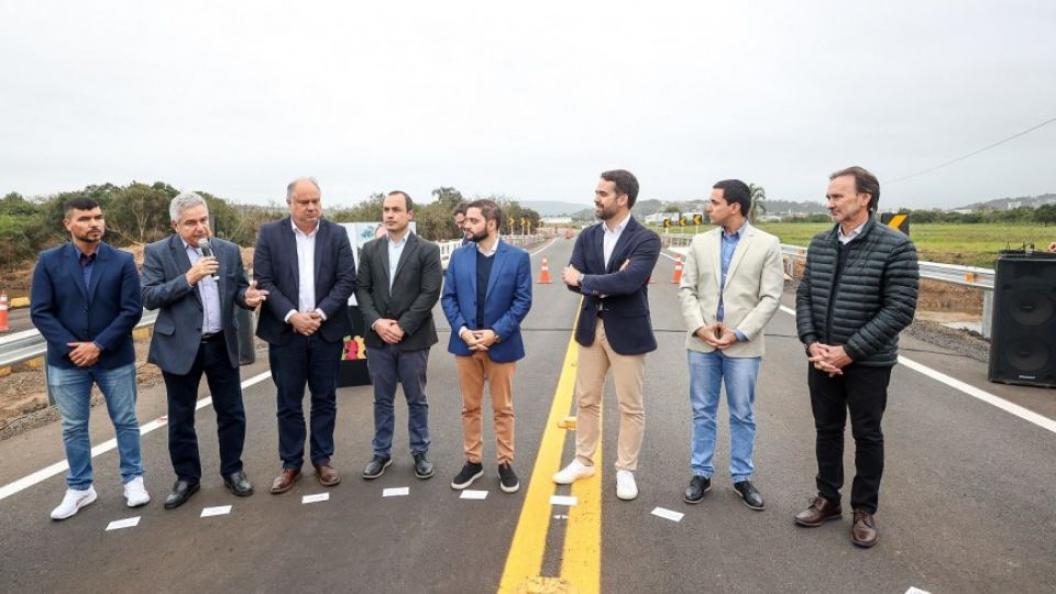 A Empresa Gaúcha de Rodovias (EGR) inaugurou, nesta quinta-feira (03/08), a nova ponte sobre o Arroio Pereira, no quilômetro 3,5 da ERS-474, em Santo Antônio da Patrulha. A obra, que conta com o investimento de R$ 858.921,72, com recursos oriundos da praça de pedágio, foi concluída cerca de quarenta dias após o ciclone extratropical que atingiu o estado no mês de junho ter destruído completamente a estrutura anterior. O governador Eduardo Leite e o vice Gabriel Souza participaram do ato, juntamente com o secretário de Logística e Transportes, Juvir Costella, o diretor-presidente da EGR, Luiz Fernando Záchia, e demais lideranças políticas.