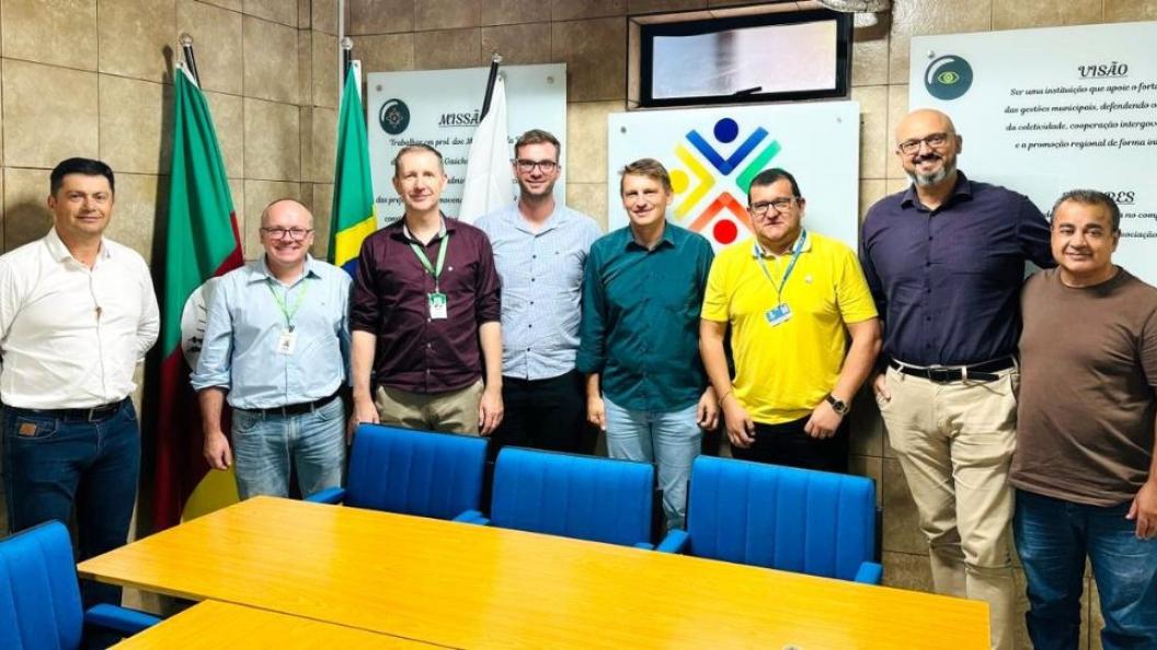 A reunião teve a participação do presidente da AMAU e prefeito de Ponte Preta, Josiel Griseli; Gilberto Pereira, coordenador de extensão da URI Erechim; Flávio Carlos Barro, presidente da UNIDEAU; Luis Fernando Santos Corrêa da Silva, diretor da UFFS Campus Erechim; Clever Variani, diretor-geral do IFRS Sertão, acompanhado do professor Affonso Lang; Sidnei Dal’Agnol, diretor-geral do IFRS Erechim; e Roberto Fontaneli, docente representando a UERGS Erechim.