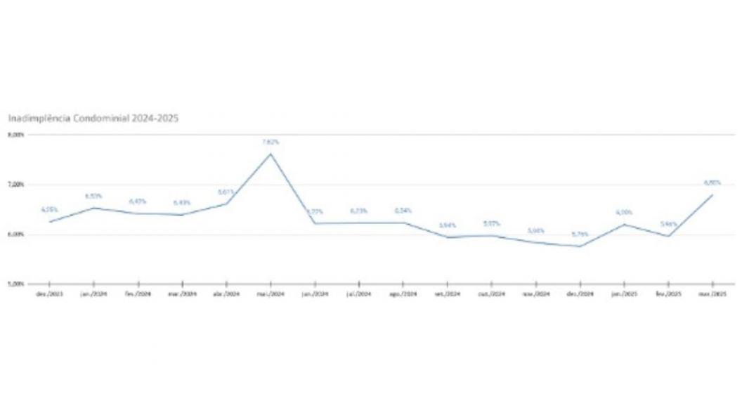 O pico de inadimplência condominial no Rio Grande do Sul nos últimos 12 meses foi em março de 2024, quando a taxa ficou em 6,85%. O menor percentual dos últimos 12 meses foi registrado em novembro do ano passado: 5,47%. No Brasil, o pico de inadimplência condominial nos últimos 12 meses havia sido em maio de 2024, quando a taxa ficou em 7,62%. Nacionalmente, o menor percentual dos últimos 12 meses foi registrado em dezembro de 2024: 5,76%.