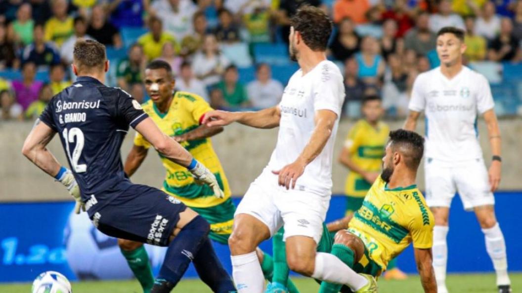 O Cuiabá, desta vez, ameaçou com Ronald, que recebeu um cruzamento de PK e concluiu, mas mandou para fora. Em seguida, após bola levantada na área, Deyverson desviou de cabeça e carimbou a trave, no ângulo da meta gremista – por pouco não virou.