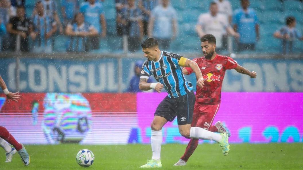 Sob muita chuva, o Grêmio recebeu na noite desse domingo (7) o Bragantino em seu primeiro jogo em casa nesta edição do Campeonato Brasileiro. O Tricolor, que começou ganhando e viu Suárez voltar a marcar, sofreu o empate no final do segundo tempo. O 3 a 3 do placar manteve o time gaúcho na 7ª colocação, com 7 pontos. O próximo compromisso na competição será nesta quarta (10) contra o Palmeiras, em São Paulo.