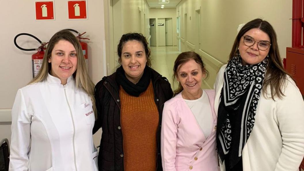 Acompanhadas pela nutricionista gestora do HBSJ, Luciana Curzel, o objetivo da visita foi conhecer o funcionamento do setor e as técnicas aplicadas no hospital.