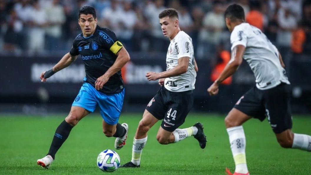 Grêmio e Corinthians disputaram em São Paulo, na noite dessa segunda-feira (18), o jogo adiado da 15ª rodada do Campeonato Brasileiro. A partida foi movimentada de ambos os lados e terminou com empate de 4 a 4. Nathan, Cristaldo, Everton Galdino e Luiz Suárez marcaram para o Tricolor gaúcho, que se mantém em terceiro lugar na tabela, com 40 pontos.