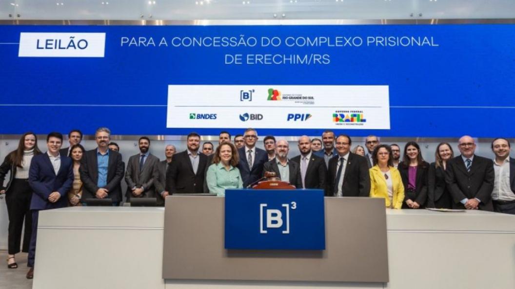 O governo do Estado realizou, nesta sexta-feira (6/10), na B3, em São Paulo, o leilão da Parceria Público-Privada (PPP) do novo Presídio de Erechim. O certame teve uma proposta, da Soluções Serviços Terceirizados, no valor de R$ 233 por vaga/dia disponibilizada e ocupada em unidade prisional. O grupo atua há 15 anos no país e atende empresas e organizações de diversos segmentos, inclusive, o prisional, e conta com mais de 18 mil colaboradores.