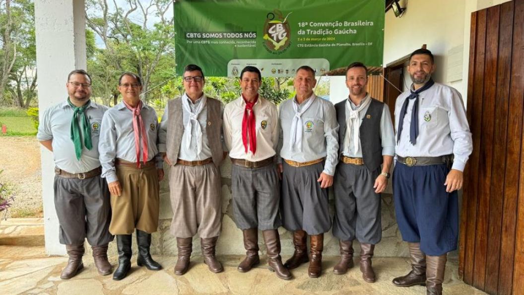 Durante os dias 3 e 4 de Março, o Movimento Tradicionalista Gaúcho do Rio Grande do Sul (MTG-RS), marcou presença na 18ª Convenção Tradicionalista da Confederação Brasileira da Tradição Gaúcha (CBTG), realizada no CTG Estância Gaúcha do Planalto, em Brasília - DF. A comitiva composta por destacados membros do movimento, participou das discussões e decisões tomadas durante a convenção. Entre os integrantes estavam o vice-presidente Campeiro, Nicanor Castilhos; o vice-presidente de Esportes Campeiros, Claudemir Bresolin; o conselheiro e diretor de Bocha Campeira, Roberto Demoliner; o conselheiro, Édison da Silva Fagundes; o vice-diretor de Truco Cego, Ricardo André Valmorbida; o diretor Artístico da CBTG, Luciano Ricardo Fleck (MTG-RS) e o secretário da vice-presidência de Esportes Campeiros, Leomar Costa.