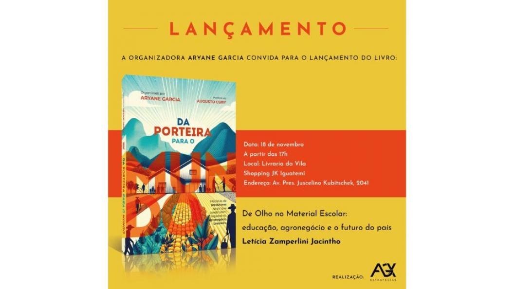 O agronegócio no Brasil tem histórias inspiradoras para contar sobre lideranças setoriais que deixaram sua marca positiva em várias áreas, com alcance até internacional. Esse é o tema do livro “Da porteira para o mundo”, organizado por Aryane Garcia, que terá lançamento neste dia 18/11, das 17h às 22h, no Shopping JK Iguatemi, em São Paulo. A De Olho no Material Escolar, que desde 2021 defende uma educação de qualidade no país, foi incluída no livro e estará presente no evento.
