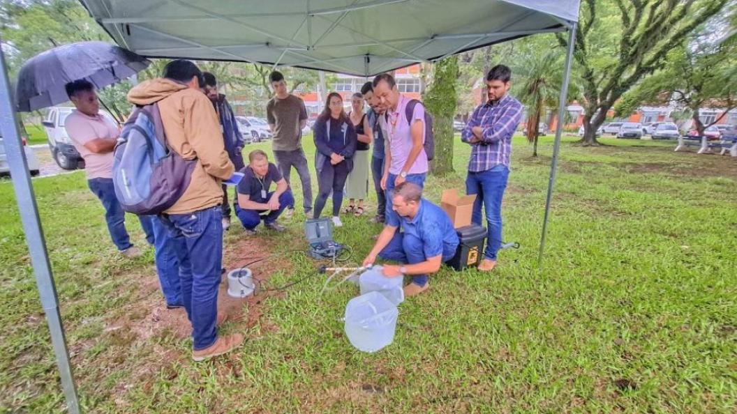 Uma demonstração do infiltrômetro utilizado pela Embrapa Trigo, equipamento que mede a taxa de infiltração de água no solo, foi realizada na manhã de segunda-feira (17/02) no pátio da Secretaria da Agricultura, Pecuária, Produção Sustentável e Irrigação (Seapi).