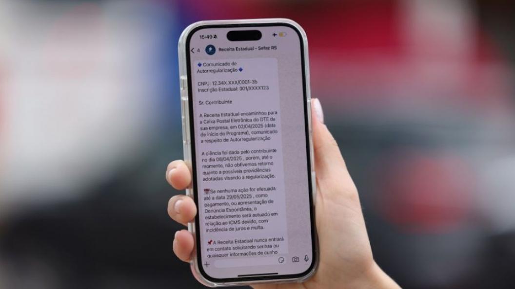A Receita Estadual (RE), vinculada à Secretaria da Fazenda (Sefaz), agora usa o WhatsApp para se comunicar com empresas e cidadãos do Rio Grande do Sul. As mensagens alertam os contribuintes sobre pendências ou avisam acerca de oportunidades. O uso do aplicativo foi oficializado pela Instrução Normativa RE 037/25, publicada no Diário Oficial do Estado de quinta-feira (8/5).