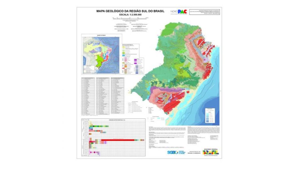 O Serviço Geológico do Brasil (SGB) lançou, nesta sexta-feira (22), no mês em que celebra os 56 anos, o Mapa Geológico da Região Sul. Esse produto faz parte do Mapa Geológico do Brasil, atualizado recentemente, e é uma importante ferramenta para ampliar o conhecimento sobre o território, impulsionando pesquisas e a valorização dos recursos naturais locais.