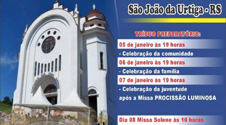 A IX Romaria do Batismo acontece de 05 a 08 de Janeiro no Santuário de São João Batista, em São João da Urtiga.