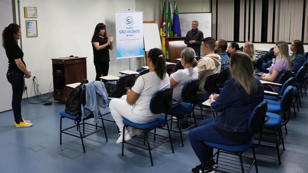 O Hospital São Vicente de Paulo de Passo Fundo e a Associação de Pais e Amigos dos Surdos (APAS) formaram, no fim de maio, duas novas turmas do curso de Língua Brasileira de Sinais. O objetivo da iniciativa é facilitar a comunicação entre os colaboradores e os pacientes surdos. A capacitação aconteceu no HSVP, durante um semestre, totalizando 60 horas, entre aulas teóricas e de conversação em Libras.