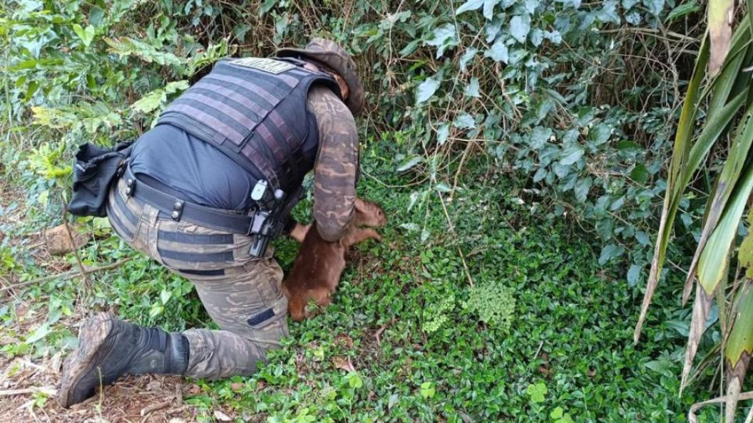 Na última quarta-feira (19/07/23) a guarnição do policiamento ostensivo de Barracão, entrou em contato com a Patram a fim de realizar a entrega de um Veado Campeiro que foi resgatado por populares e que visualmente encontrava-se ferido.