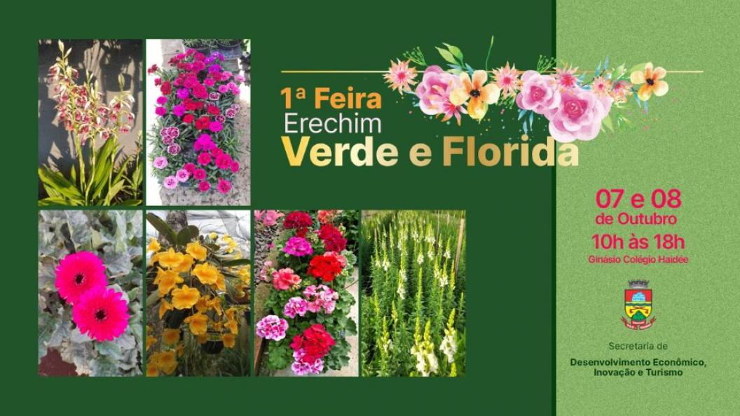 A 1ª Feira Erechim Verde e Florida será neste fim de semana, sábado (07) e domingo (08), das 10h às 18h, no Ginásio do Colégio Estadual Haidée Tedesco Reali. A entrada é gratuita. A exposição e comercialização de flores e plantas ornamentais naturais e medicinais, móveis e utensílios para jardins, é uma promoção da Prefeitura de Erechim, por meio da Secretaria Municipal de Desenvolvimento Econômico, Inovação e Turismo.
