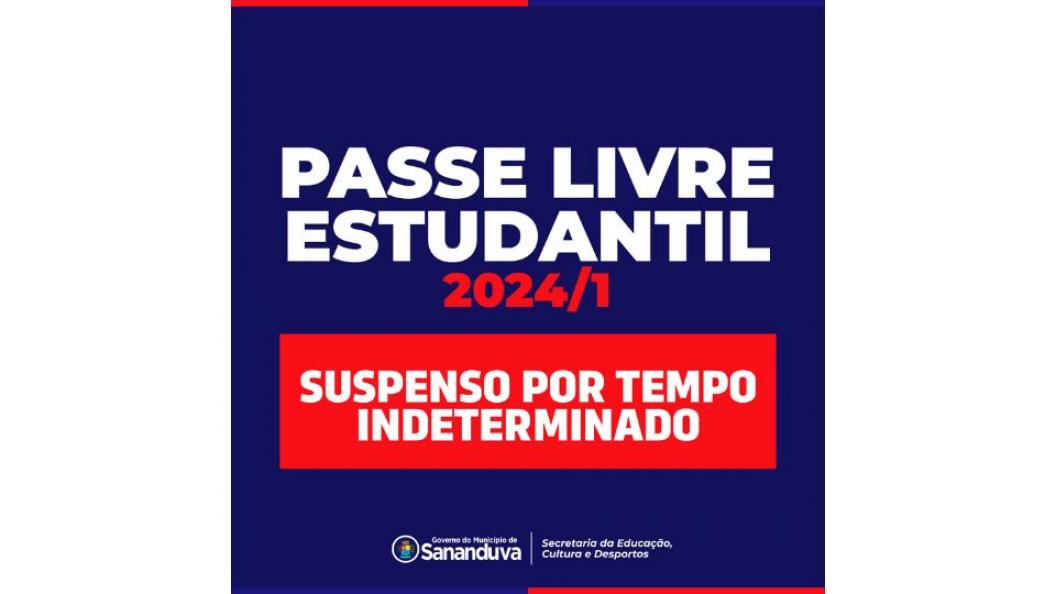 A Secretaria da Educação, Cultura e Desportos informa que devido às fortes chuvas que têm assolado nosso estado nos últimos dias, o sistema responsável pela documentação do Passe Livre Estudantil está fora do ar, portanto, o programa encontra-se suspenso por tempo indeterminado.