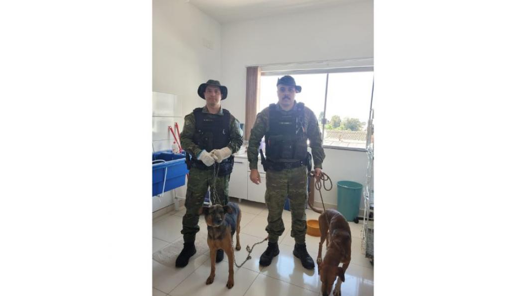A guarnição deslocou até o endereço e constatou que dois cães sem raça definida estavam em um canil repleto de fezes e restos de ossos, sem acesso a comida e água, forte cheiro de fezes e urina.