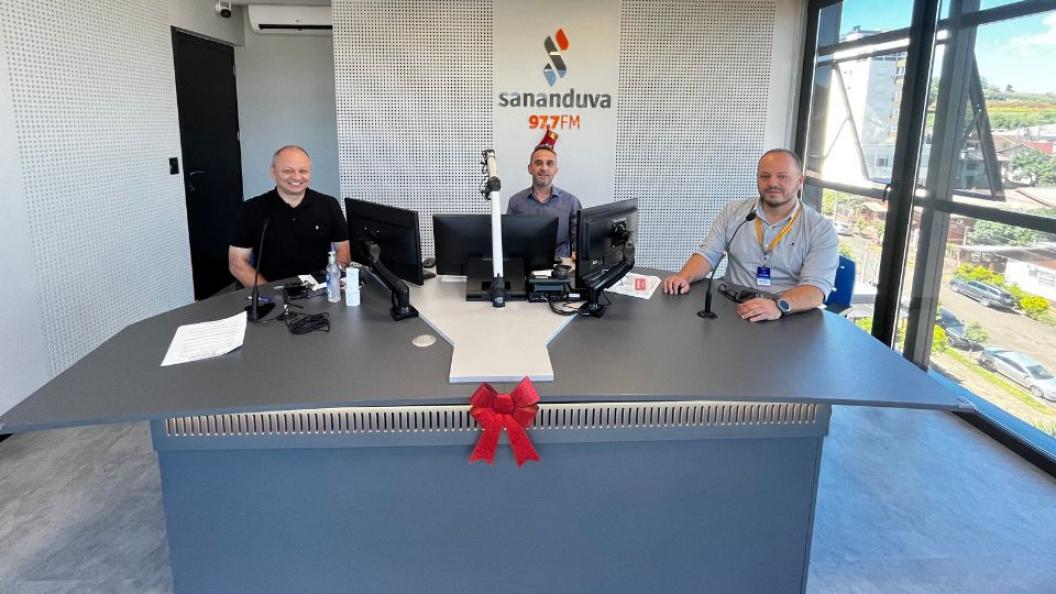 Na manhã desta sexta-feira (27.12) estiveram em nosso estúdio no Programa Estúdio Atualidades, a Diretoria do Hospital São João de Sananduva, Roberto Luis Testa - Presidente, Sérgio Pinheiro - Diretor Financeiro e Tiago Antonietti - Diretor Administrativo, participando da nossa tradicional Retrospectiva, para falar sobre como foi a rotina dos trabalhos do Hospital São João durante este ano de 2024.
