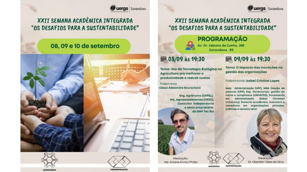 Participaram do Programa Estúdio Atualidades na manhã desta quinta-feira (04.09), Andreza Mueller - Presidente do Diretório Acadêmico da UERGS e Daniela Bais - Representante do Curso de Agronomia, na oportunidade as entrevistadas falaram sobre a XXII Semana Acadêmica da Uergs que acontece nos dias 08, 09 e 10 de Setembro.