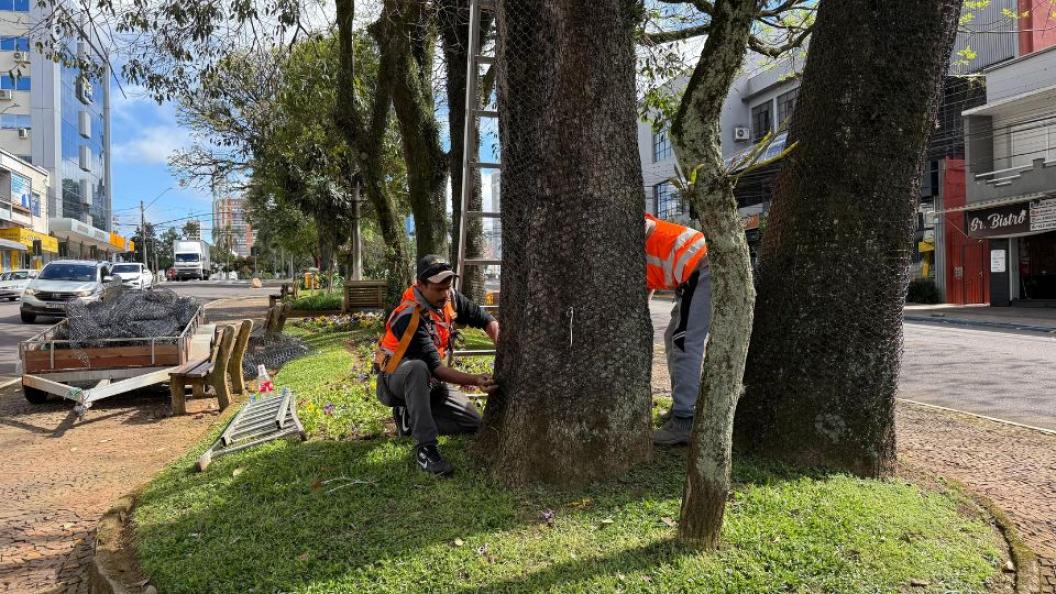 Erechim já começou a se preparar para o Natal 2025. Desde a última terça-feira (07), a empresa responsável pela decoração iniciou a colocação das telas plásticas nas árvores das principais avenidas e praças da cidade, preparando o espaço para a instalação das luzes natalinas.