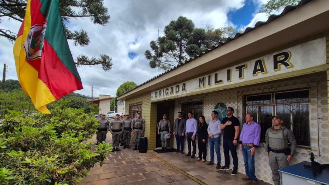 A Brigada Militar realizou, nesta quinta-feira (09/10), a solenidade de entrega de um fuzil T4 calibre 5.56 ao Grupo de Polícia Militar (GPM) de Cacique Doble, pertencente ao 10º Batalhão de Polícia Militar.