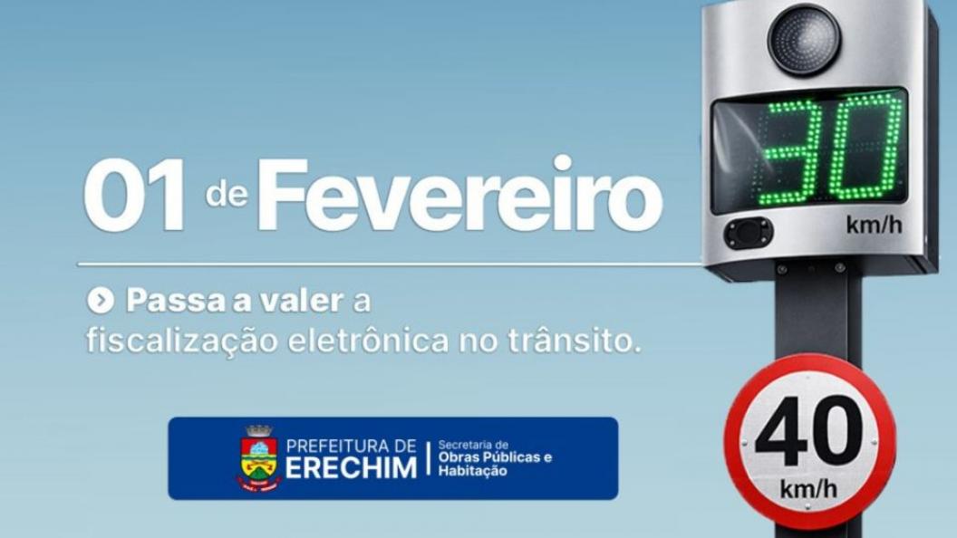 A fiscalização eletrônica de trânsito passa a operar oficialmente em Erechim a partir do dia 1º de fevereiro de 2026, marcando uma nova etapa nas ações de organização e segurança viária do município. A implantação faz parte do Plano de Mobilidade Urbana e tem como principal objetivo preservar vidas, promovendo um trânsito mais seguro e ordenado.