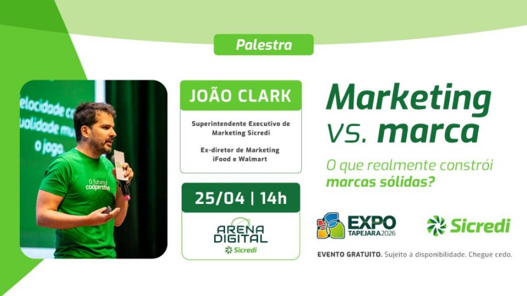 A palestra será conduzida por João Clark, Superintendente Executivo de Marketing do Sicredi, que reúne uma sólida trajetória no mercado, com passagens como ex-diretor de marketing do iFood e do Walmart. Ao longo do encontro, o palestrante vai compartilhar aprendizados práticos sobre posicionamento, reputação e consistência de marca, a partir da experiência de quem liderou estratégias em grandes organizações.