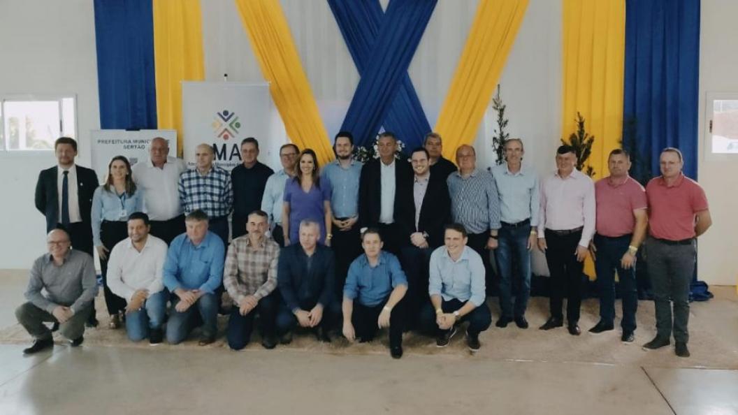 O presidente da Amau e prefeito de Barra de Rio Azul, Marcelo Arruda, juntamente com o anfitrião, prefeito de Sertão, Edson Rossato, acolheram os colegas da região.