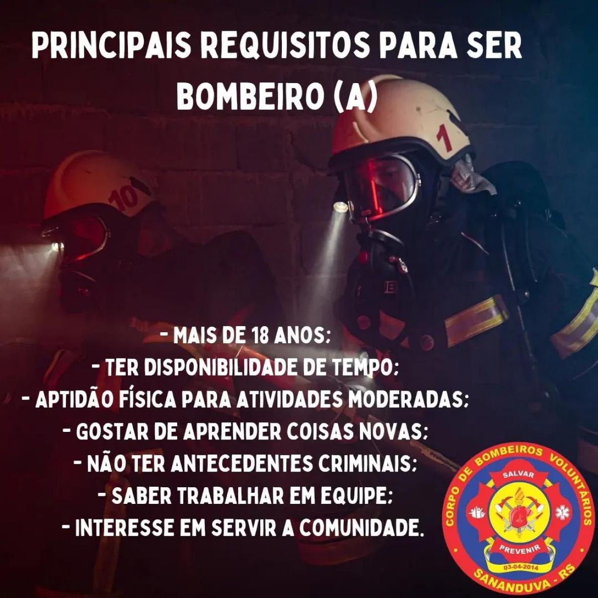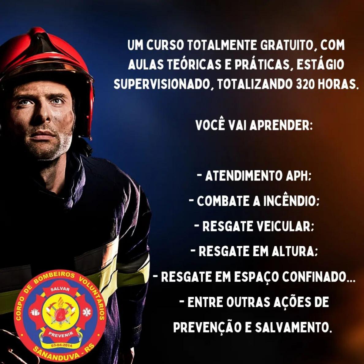 As inscrições para o curso de Formação de Bombeiro Voluntário são exclusivas para Sananduva e seguem até o dia 31 de março.