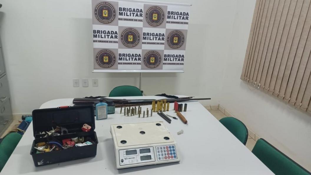 Após realizar averiguações no local foram encontrados: balança de precisão, medicamentos de uso veterinário, bicos de ferro, bolsas de transporte para galos, rinhador, R$2.576,00 oriundo de apostas, gaiolas para galos e 5 galos mortos na área externa do barracão. Após diligências nas proximidades do barracão, foi encontrado uma espingarda calibre 9.1, marca Boito, sem numeração aparente, uma cartucheira com 3 munições intactas e 14 deflagradas e uma bolsa contendo 2 tubos de chumbo, um tubo de pólvora, 5 estojos de calibre 12 deflagrados, 13 estojos de calibre 20 deflagrados onde não foi possível identificar o proprietário.