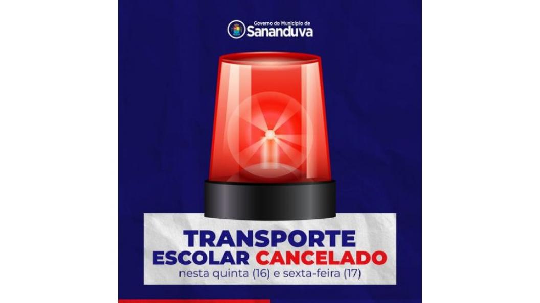 O Governo do Município de Sananduva, por meio da Secretaria de Educação, Cultura e Desportos, primando pela segurança dos alunos, comunica o cancelamento do transporte escolar na zona rural do Município devido às fortes chuvas das últimas horas. Ainda, comunica o cancelamento das aulas nas Escolas Oreste Agostinetto e Assis Brasil.