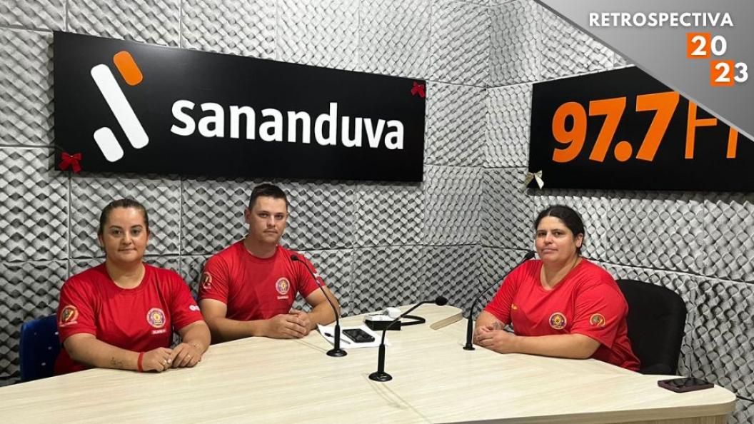 Na manhã desta quinta-feira (07.12) estiveram em nosso estúdio no Programa Estúdio Atualidades, Alisson Silveira, Siliane Pereira da Rosa e Leticia Coratto Ferreira dos Bombeiros Voluntários de Sananduva, participando da nossa tradicional Retrospectiva, para falar sobre como foi a rotina dos trabalhos dos Bombeiros Voluntários de Sananduva durante este ano de 2023.