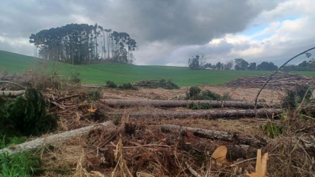 Após atendimento de denúncia anônima, a guarnição realizou levantamento ambiental onde no local informado foi constatado o corte de 11 Pinheiros Brasileiros (araucaria angustifolia) totalizando 10,29 metros cúbicos de madeira em toras em área de preservação permanente. Foi identificado o responsável e verificado que o mesmo não possui licença ambiental para realização de corte de araucárias.