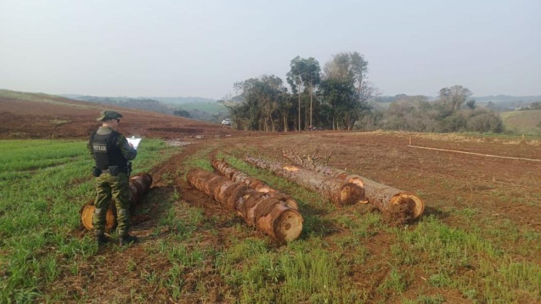 Após atendimento de denúncia anônima a guarnição realizou levantamento fotográfico e georreferenciamento onde foi constatado a supressão de vegetação nativa em estágio avançado de regeneração, conforme espécies remanescentes foram suprimidas árvores das espécies canela-guaicá, açoita-cavalo, camboatã, angico entre outras em uma área de 9.800 metros quadrados (0,98 hectares). Também foi constatado o corte de 03 (três) araucaria angustifolia totalizando 2,02 metros cúbicos de madeira. O corte e a supressão foram fora de área de preservação permanente e pertencente ao bioma mata atlântica.